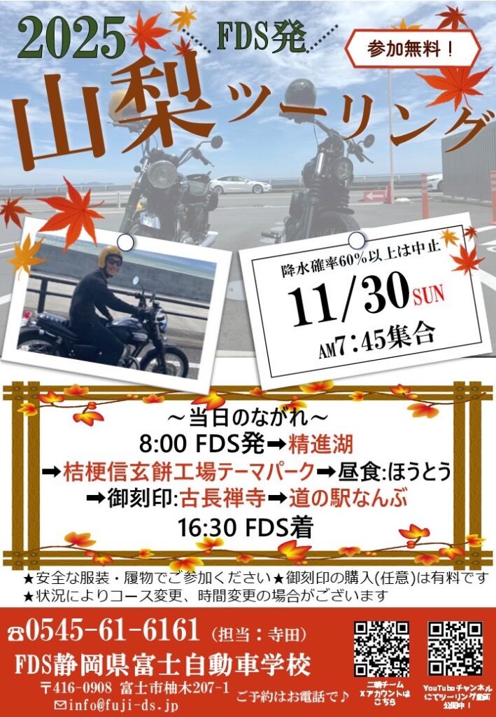 参加無料!FDS発 山梨ツーリング 参加者募集!!
