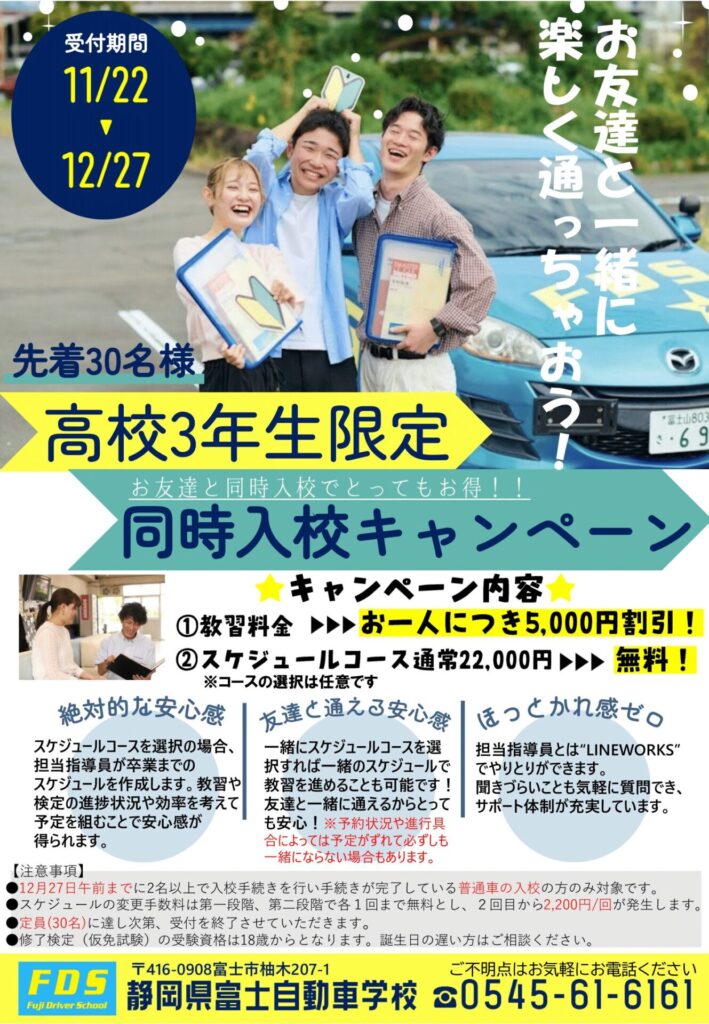 🎓 【高校3年生限定!!】 お友達と一緒に!同時入校キャンペーン!!🚗
